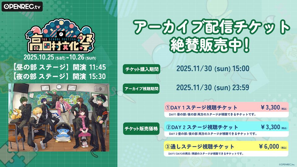 通常チケット:2025/10/25(土)00:00〜11/30(日)15:00