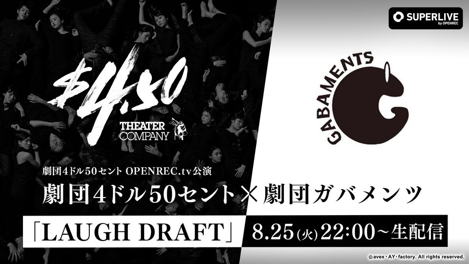 劇団4ドル50セント×劇団ガバメンツ公演「LAUGH DRAFT」のライブ配信のご視聴と、アーカイブでもご視聴をいただけるスタンダードプラン。