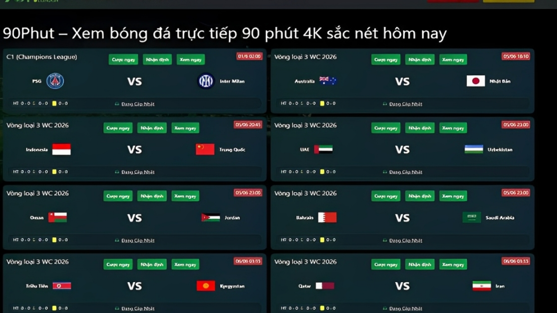 90P là website phát trực tiếp bóng đá hàng đầu Việt Nam, chất lượng hình ảnh cao. BLV tiếng việt các giải bóng đá Anh, Laliga, C1, Euro,...