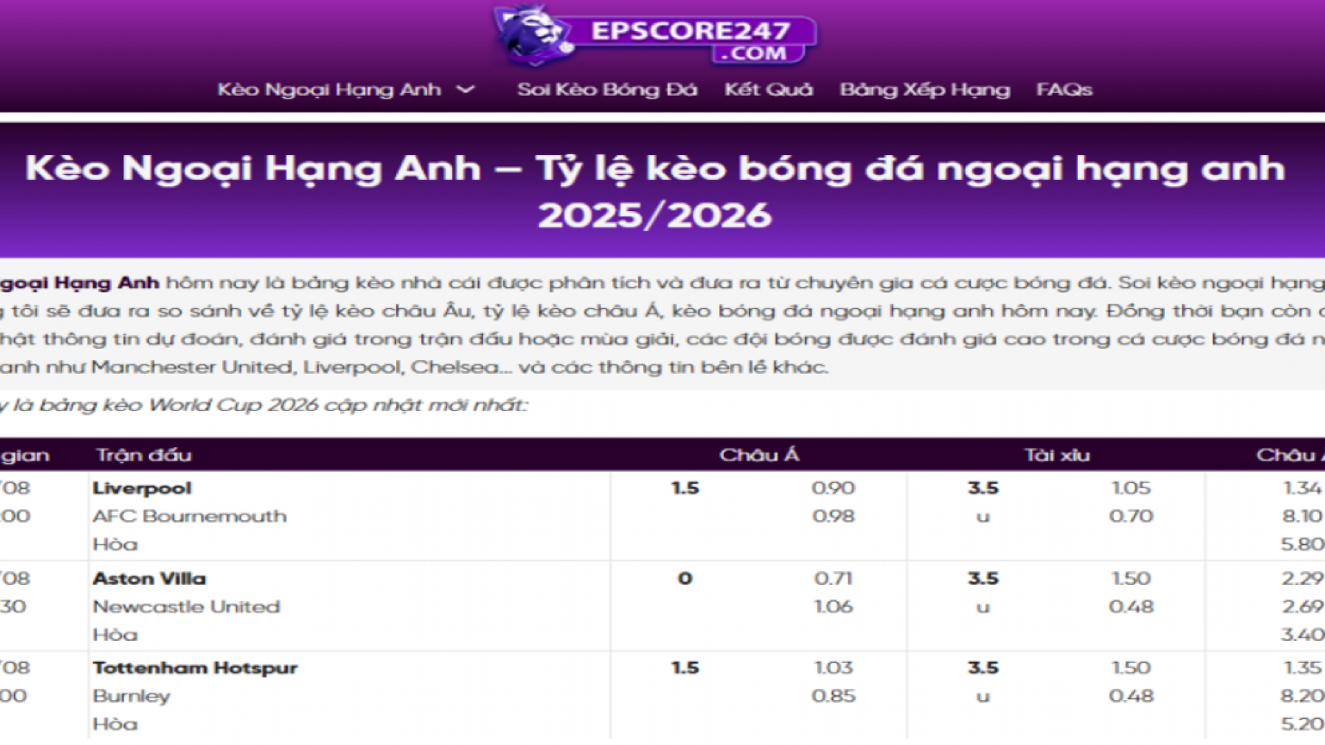 - Tên thương hiệu: Kèo Ngoại Hạng Anh Epscore247