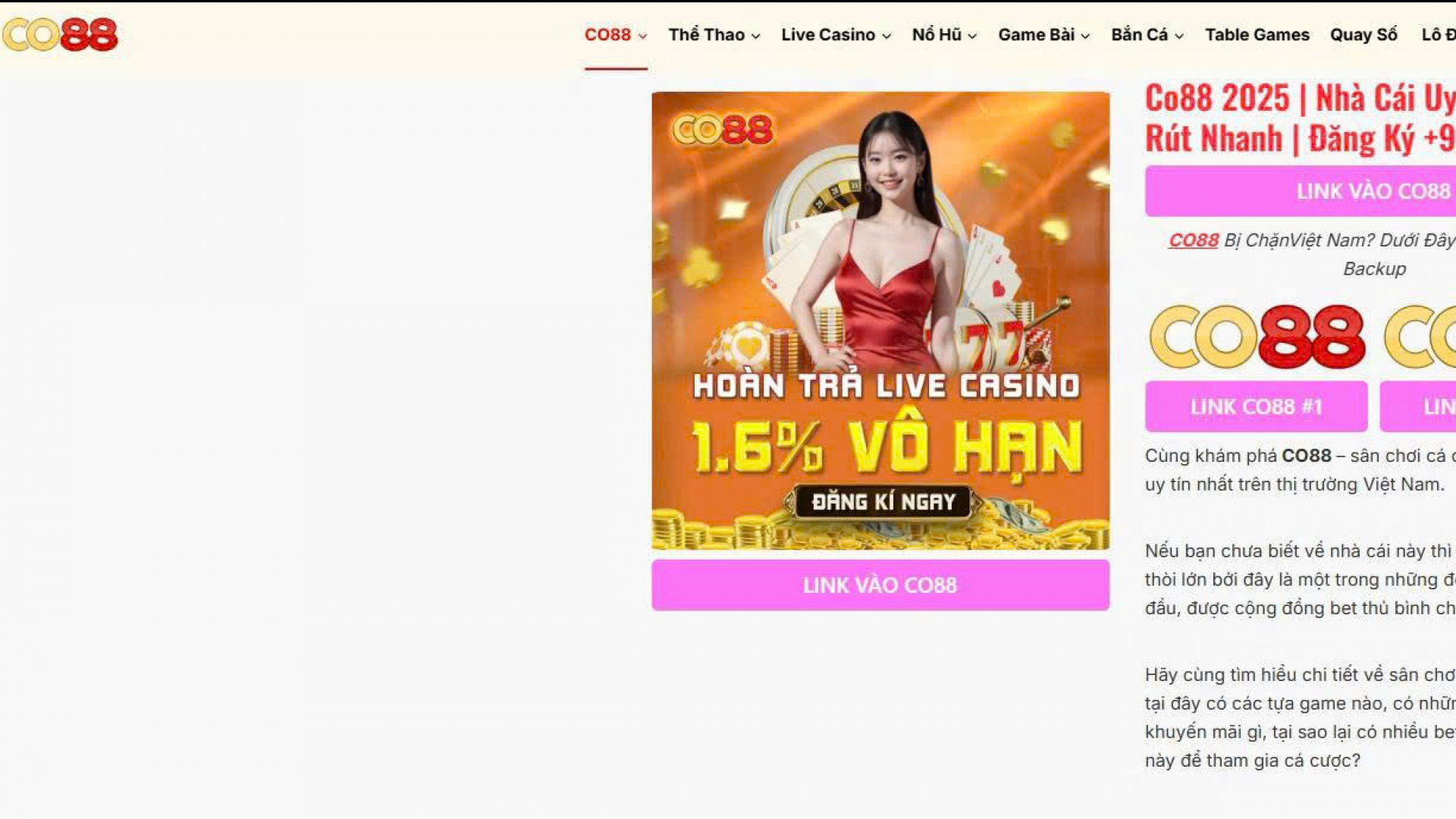 Trải nghiệm CO88 để tận hưởng khuyến mãi hấp dẫn, giao diện thân thiện, nạp rút siêu tốc và hỗ trợ khách hàng 24/7.