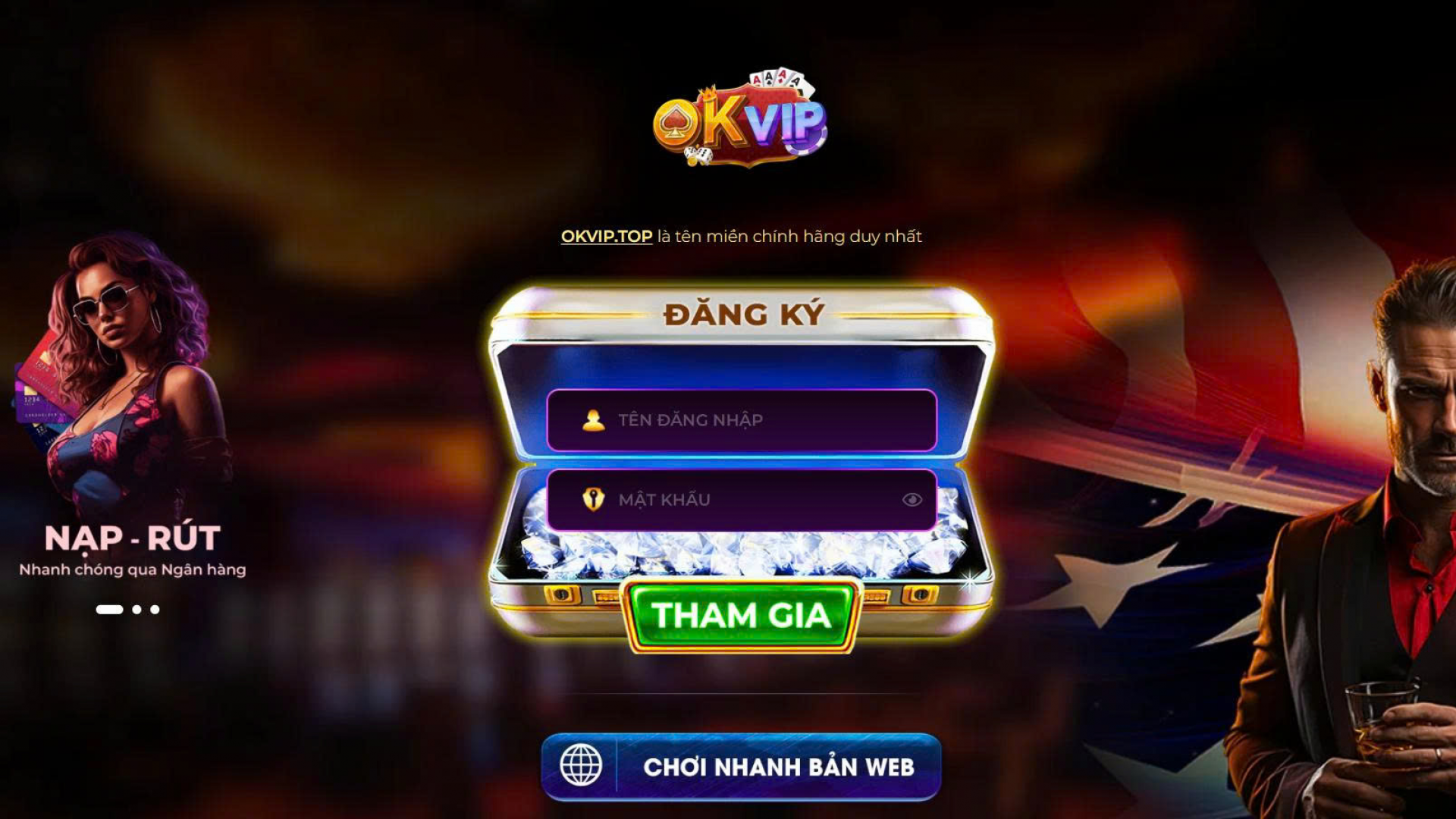 Okvip – Cổng game giải trí trực tuyến uy tín, đa dạng trò chơi cá cược, nạp rút siêu tốc. OKVIP cam kết bảo mật tuyệt đối, hỗ trợ 24/7, mang đến trải nghiệm an toàn và chuyên nghiệp