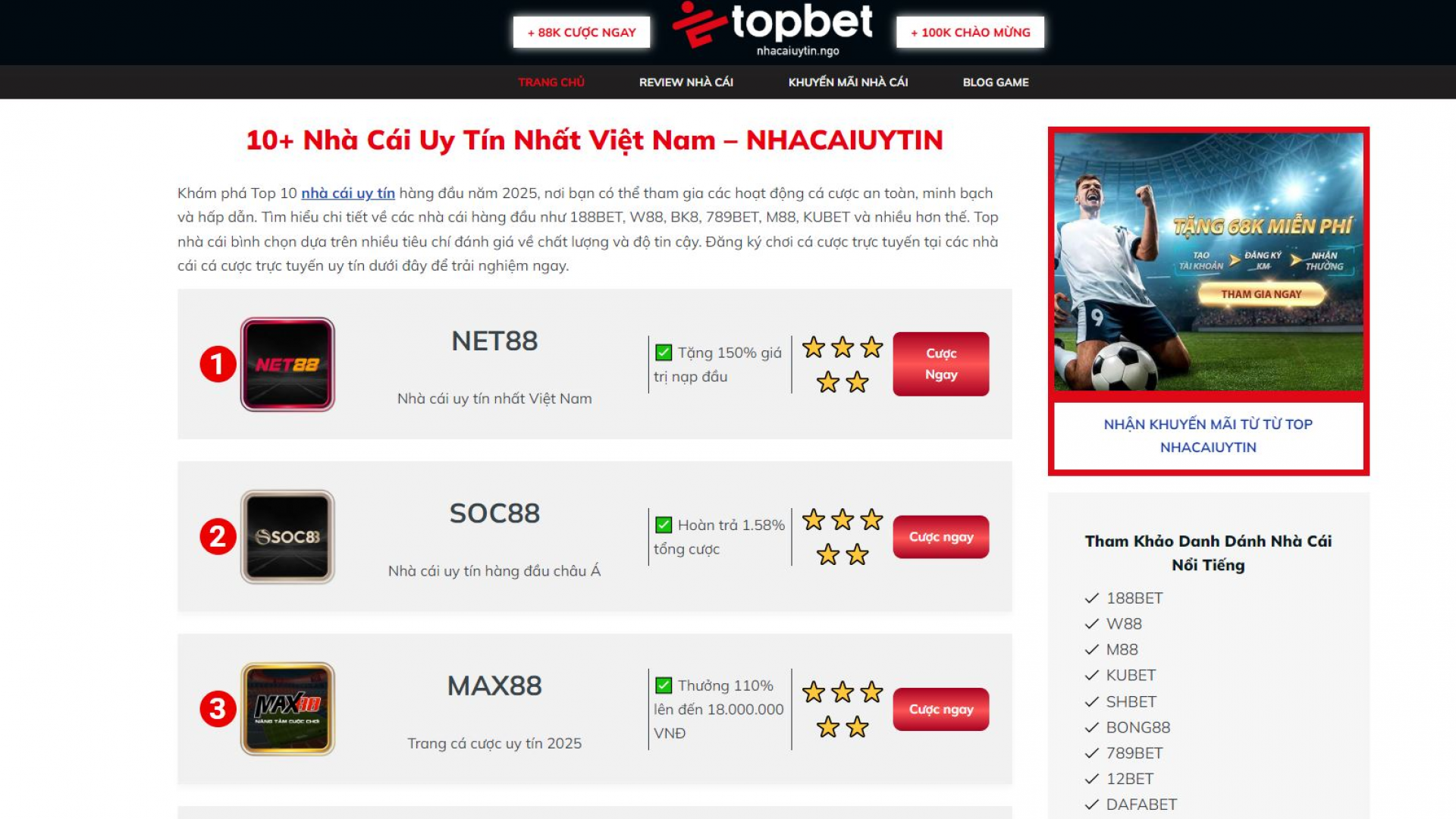 Nhà cái uy tín - nhacaiuytin.ngo cập nhật top 10 nhà cái uy tín nhất Việt Nam và toàn thế giới, đánh giá sự uy tín của các trang web cá cược trực tuyến. Top nhà cái bình chọn dựa trên nhiều tiêu chí đánh giá về chất lượng và độ tin cậy.