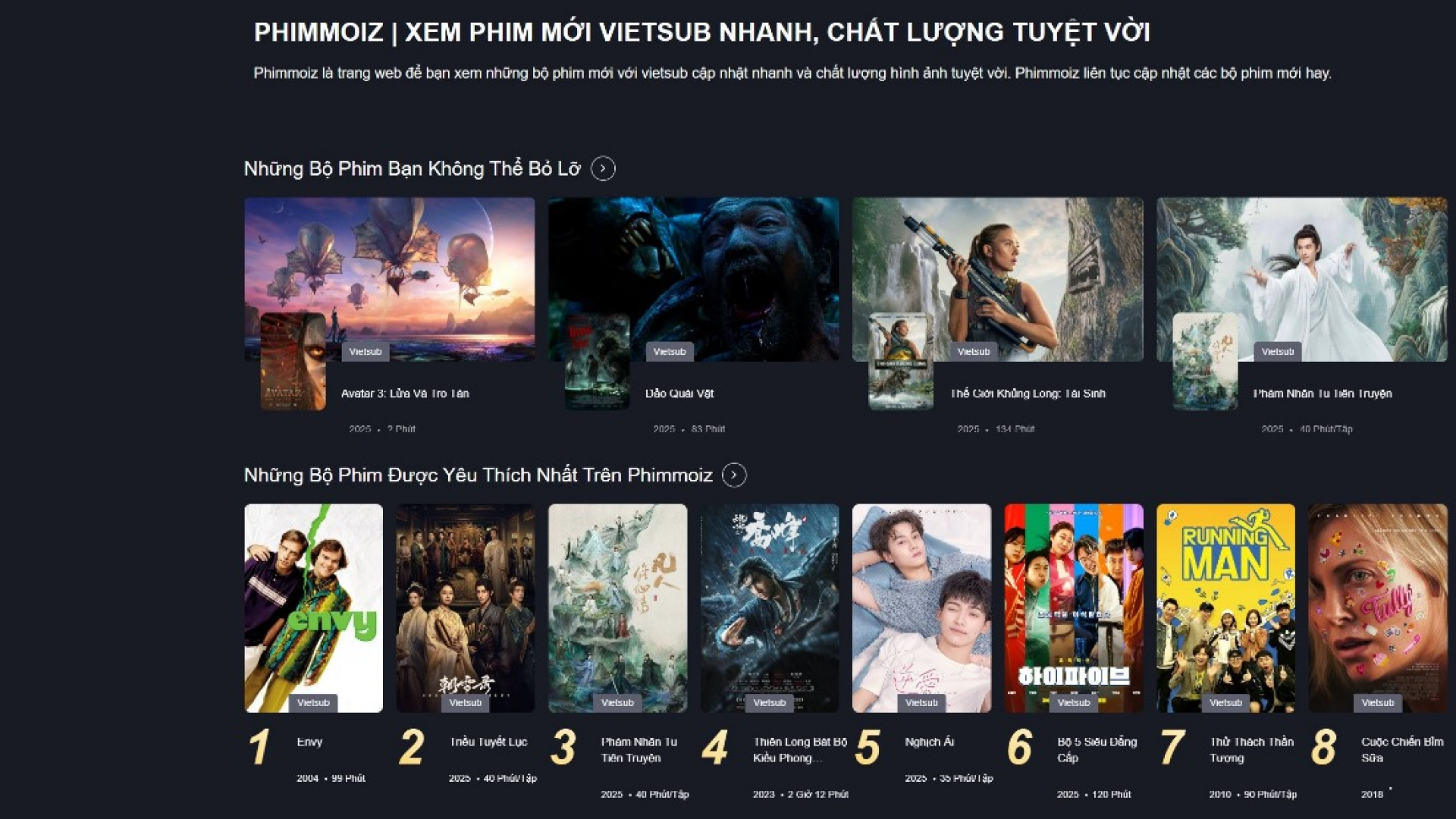 Phimmoiz là trang web để bạn xem những bộ phim mới với vietsub cập nhật nhanh và chất lượng hình ảnh tuyệt vời. Phimmoiz liên tục cập nhật các bộ phim mới hay.