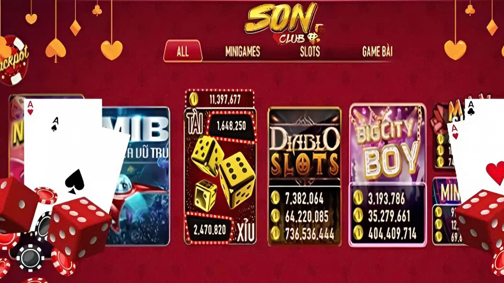 SonClub mang đến kho game khổng lồ với nhiều thể loại như: game bài đổi thưởng (Tiến lên, Phỏm, Mậu binh…), slot game, tài xỉu, bắn cá và các trò chơi live casino đỉnh cao. Tất cả đều được thiết kế với đồ họa bắt mắt, âm thanh sống động và cơ chế chơi công bằng, tạo nên trải nghiệm chân thực như tại sòng bài thật.