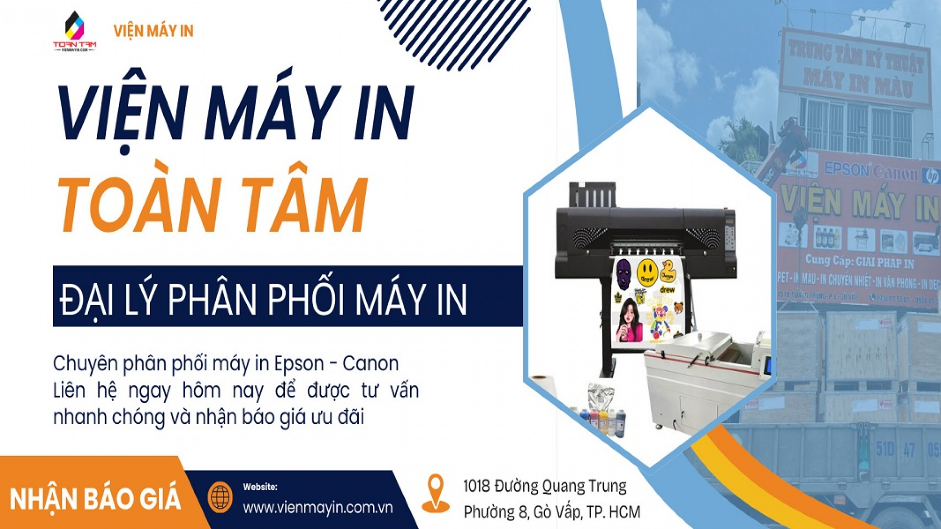 Viện Máy In Toàn Tâm là một công ty hàng đầu trong lĩnh vực cung cấp các loại máy in và phụ kiện in. Với nhiều năm kinh nghiệm và uy tín trong ngành, chúng tôi đã xây dựng được một danh tiếng vững chắc và trở thành đối tác tin cậy của nhiều khách hàng cũng như doanh nghiệp lớn nhỏ.